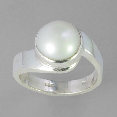 Pearl 8 ct Freshwater Pearl Bezel Set Fancy Scroll Shank Sterling Silver Ring, Size 8