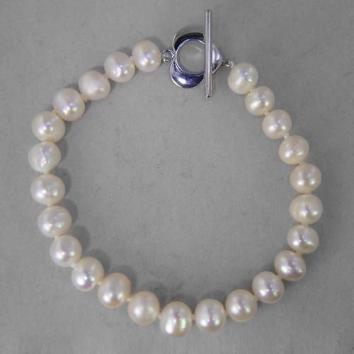 Pearl 8.5 ct Freshwater Pearl V Shank Sterling Silver Ring, Size 9