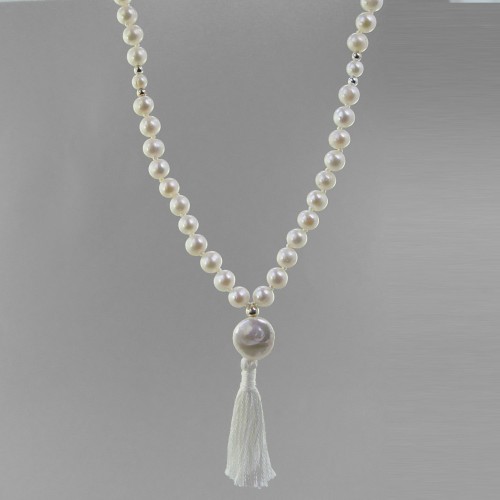 Pearl 6 ct Bezel Set With 12 Small Pearls Sterling Silver Pendant