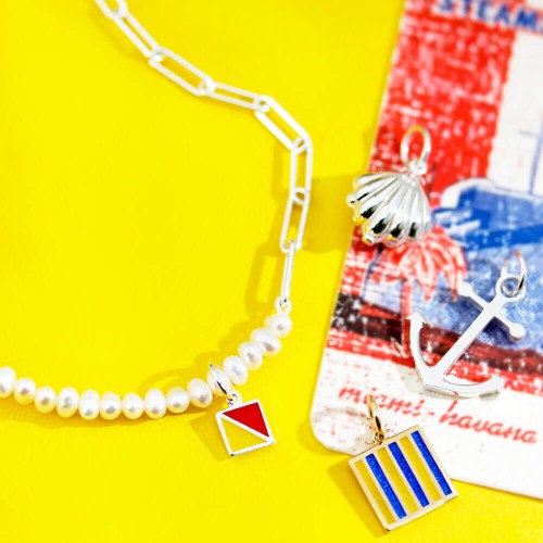 Pearl Paperclip Chain Necklace, 16″ Silver