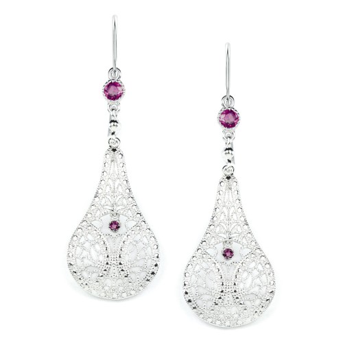These vintage style earrings feature bright yellow citrines paired with an elegant sterling silver filigree design. The teardrop shaped dangles feature ethereal, lattice-like filigree. The peridots are natural, earth mined stones.