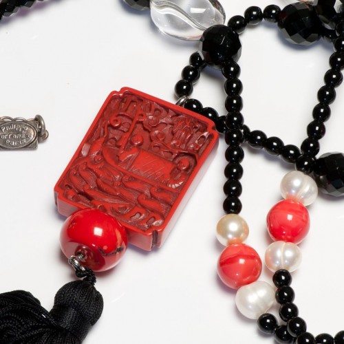Be the first to review “Philippe Ferrandis Asian Style Rock Crystal Pearl Black Glass Tassel Necklace” Cancel reply
