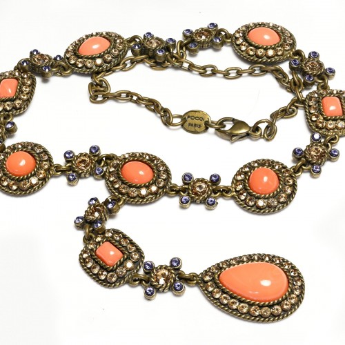 Unveil the allure of sophisticated craftsmanship with this Poggi Paris necklace, featuring vibrant orange cabochon glass crystals set in a stunning design. Each radiant cabochon is meticulously cut to reflect light beautifully, creating a mesmerizing interplay of hues. Handcrafted by the renowned Poggi Paris, this piece embodies the brand’s dedication to artistry and elegance.