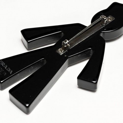 Elevate your style with Prada’s Black Resin Yellow White Leather Sailor Brooch. This unique accessory boasts a sleek black resin base, adorned with a playful yellow and white leather sailor design. Perfect for adding a touch of luxury and sophistication to any outfit.