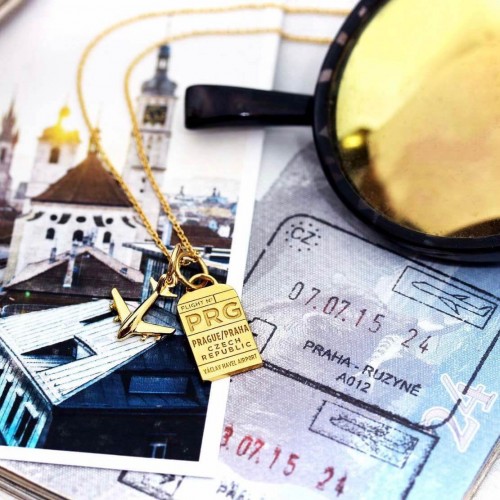 Prague Czech Republic PRG Luggage Tag Charm Gold
