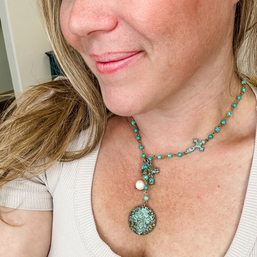 Trail Flower – Genuine Turquoise Tooled Leather Shoulder Bag
