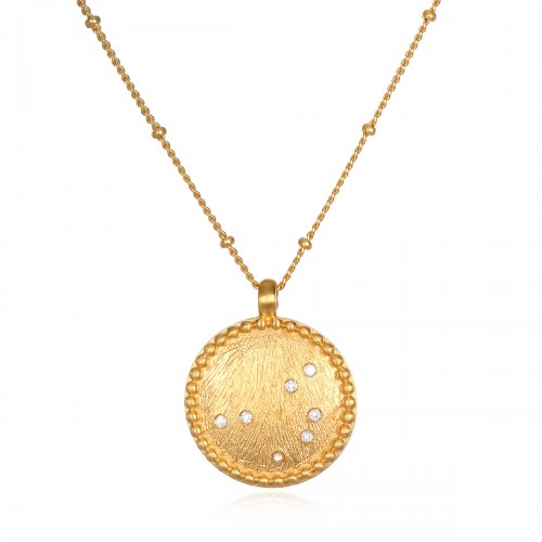 From a place of love, we radiate goodness and felicity. An 18k gold plate sun charm dangles from this necklace, signifying life, leadership and vitality; a glimmering blue topaz improves communication, imparts wisdom and ignites love in its wearer.