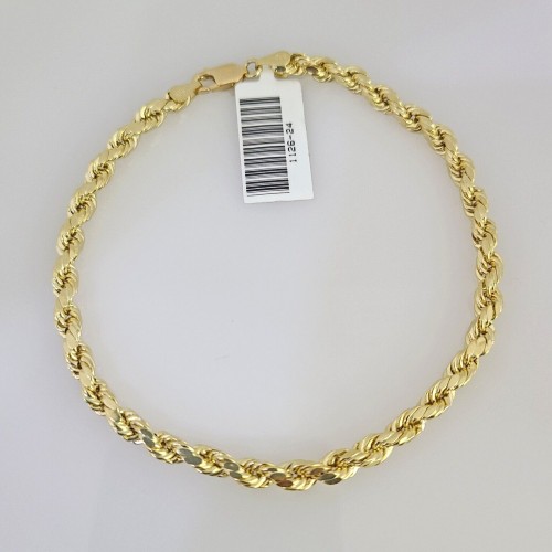 Real 10K Gold Rope Bracelet Yellow 8″ Inch 4mm 10kt Men Women