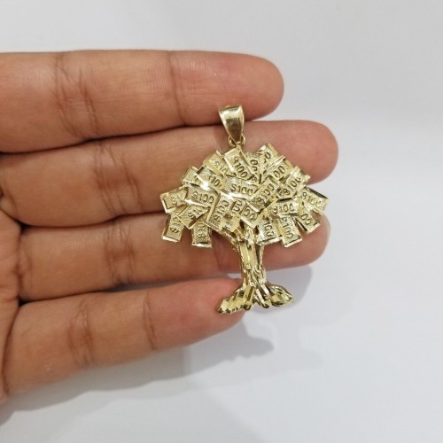 Real 10k Gold Money Tree Charm 1.7 inch pendant 10kt Yellow Gold
