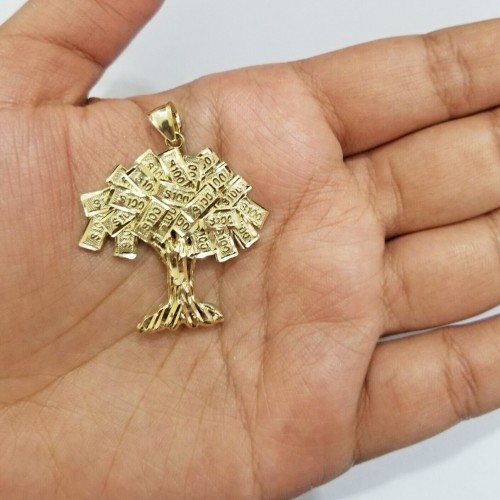 Real 10k Gold Money Tree Charm 1.7 inch pendant 10kt Yellow Gold