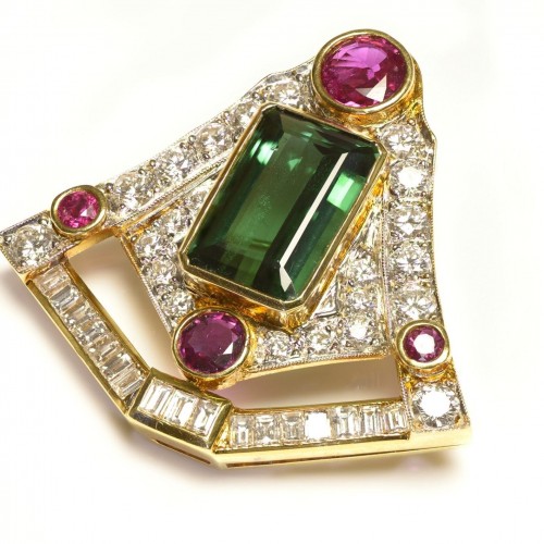 Red Green Tourmaline Diamond Brooch