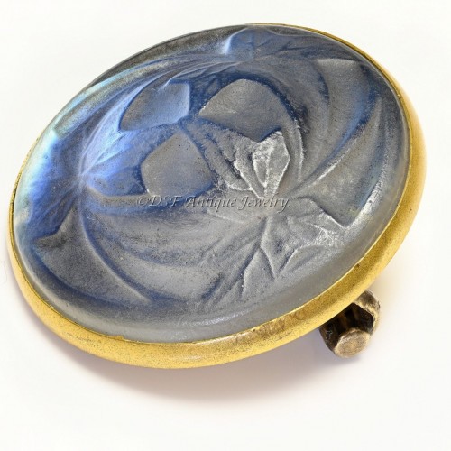 Rene Lalique Blue Glass Leaf Brooch