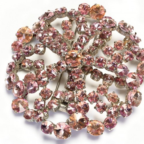 Roger Jean Pierre Paris 1950’s Christian Dior Haute Couture Pink Crystal Flower Brooch
