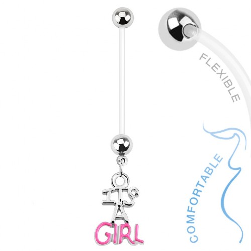 You can show off your proud baby bump with this cute rose gold baby feet belly button ring. This pregnancy belly ring is flexible for a great comfortable fit. Cute clear gems on each big toe.