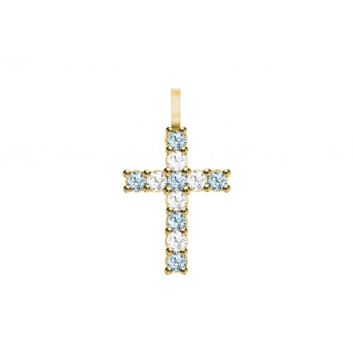 This understated and elegant small cross will become the foundation of your wardrobe. Combine this meaningful symbol of your faith with your birthstone or the birthstone of a loved one to bring a sense of strength and protection. Seven brilliant Nantucket Blue Topaz gemstones prong set in solid 14k gold sparkle and shine in a timeless design perfect for everyday wear.