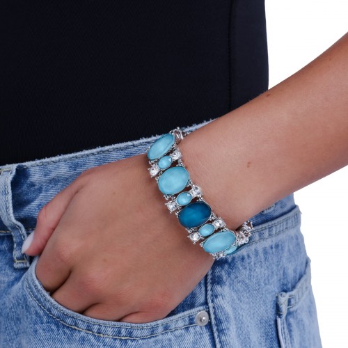 Encased in sleek white rhinestone-dusted silver frames, faceted round multicolored gems shimmer below the neckline from a glistening silver chain for a colorfully chic look. Features an adjustable clasp closure. Sold as one individual choker necklace