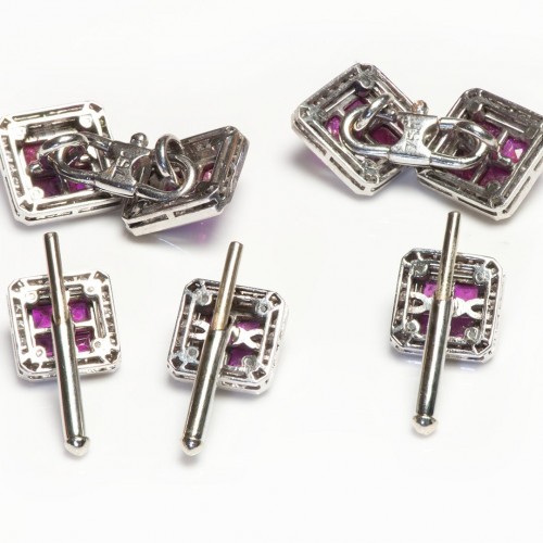 Ruby Diamond Cufflink Stud Set 18K Gold