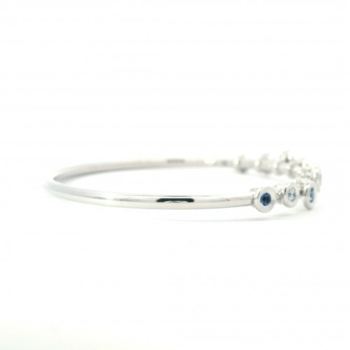 Elevate your style with this exquisite Lady’s White 18Kwg Diamond Bracelet from Hulchi Belluni’s Bouli Collection. This stunning piece, featuring the timeless elegance of 18K white gold, is adorned with 0.38ct bezel-set diamonds and 0.50CT of blue sapphires