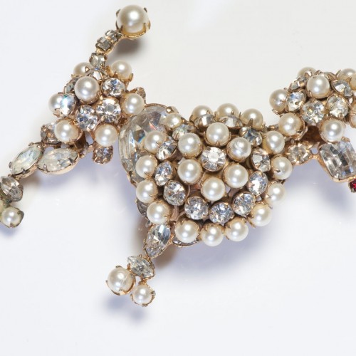 Be the first to review “Schreiner New York 1960’s Crystal Faux Pearl Poodle Dog Brooch” Cancel reply