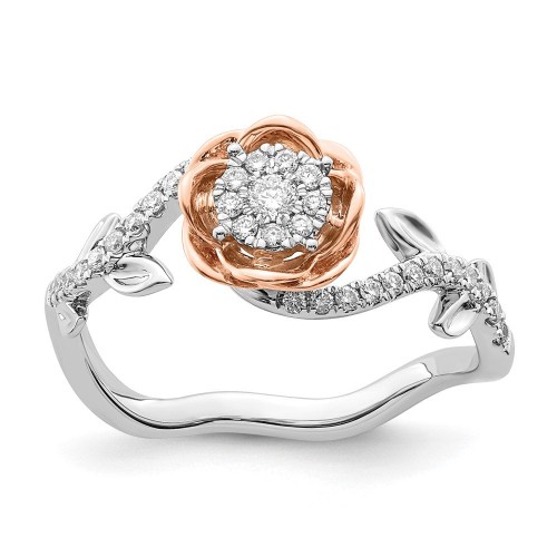 Discover the elegance of our 14K Two-Tone White and Rose Gold Ruby & Diamond Floral Ring. This high-quality piece features a 0.09 ct ruby and diamonds, perfect for gifts or online purchases. Order now!