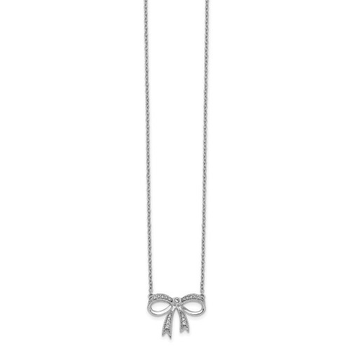 Elevate your style with our 14K White Gold Diamond Bow Necklace. This 18-inch luxury piece features 14 diamonds totaling 0.05 ct. Order online today for an exclusive gift that dazzles!
