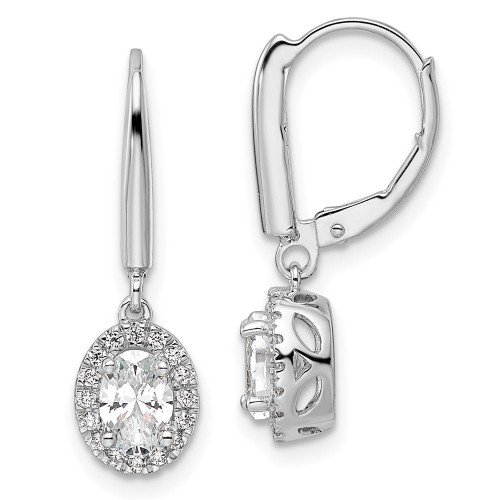 Shop Exclusive 14K White Gold Oval Created Sapphire Halo Earrings, 1/20 Carat Diamond – Stylish Value!