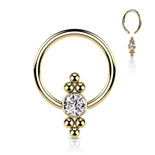 Silver CZ Flat Ball with Clusters Captive Bead Ring