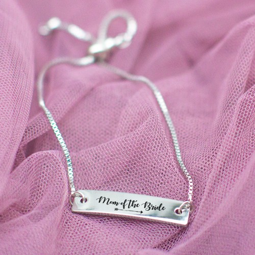 Silver Mom of the Bride Adjustable Bar Bracelet