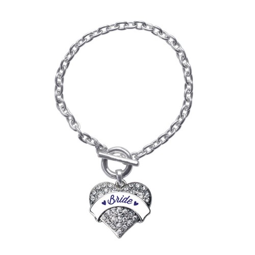 Our sparkling toggle bracelet, equipped with a stylish toggle clasp and the Navy Blue Bridesmaid pave heart charm, is crafted from white metal with a silver plated finish and accented with cubic zirconia stones.