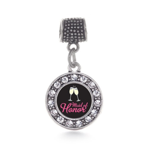 Our sparkling memory charm, equipped with a stylish charm attachment ring and the Silver Sis of the Bride pave heart charm, is crafted from white metal with a silver plated finish and accented with cubic zirconia stones.