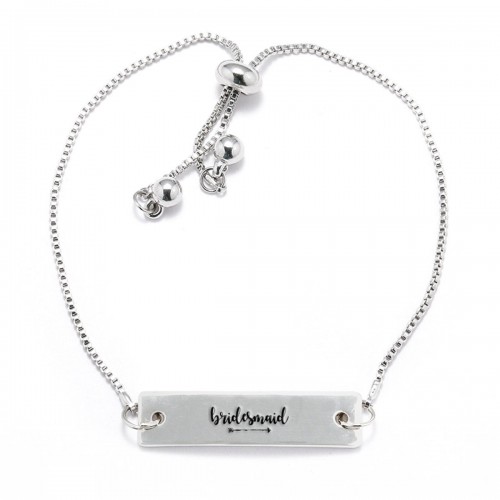 Silver Team Bride Adjustable Bar Bracelet
