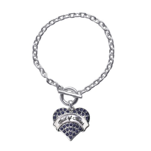 Silver Navy Maid of Honor Blue Pave Heart Charm Toggle Bracelet