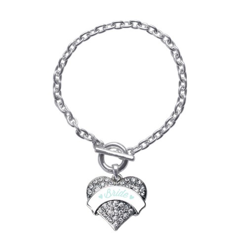 Silver Aqua Sis of the Bride Aqua Pave Heart Charm Toggle Bracelet