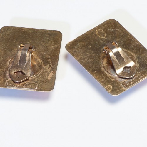 Sonia DeMaria 1980’s ldemaria Mondrian Style Red Blue Crystal Earrings