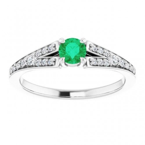 Split Shank Round Green Emerald Ring 1.75 Carats White Gold 14K