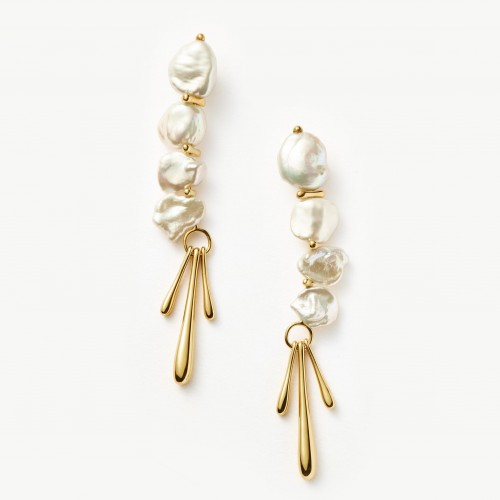 Pearls, reimagined. Make a statement with these large standout gold pearl drop studs, featuring large button and square pearls. Let them take centre stage or style with studs for an instant ear stack.