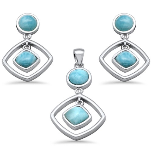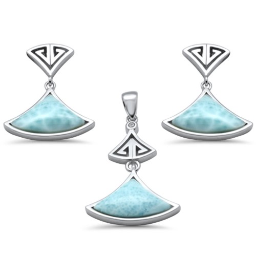 Square & Rectangle Natural Larimar Greek Design .925 Sterling Silver Pendant & Earrings Set