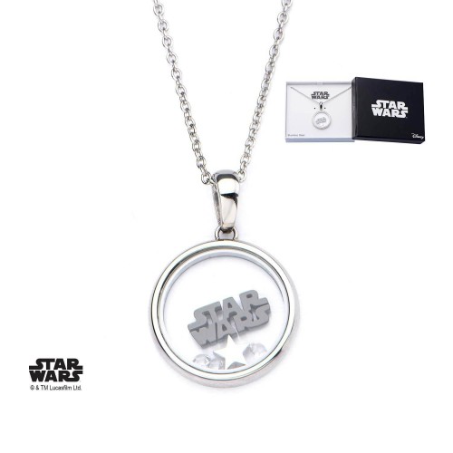 Star Wars Pink Glitter Logo Stainless Steel Beads Pendant Necklace for Women.