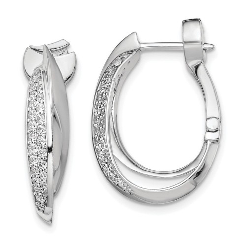 Sterling Shimmer Sterling Silver Rhodium-plated 106 Stone PavÇ CZ Double Twisted Oval Hinged Hoop Earrings