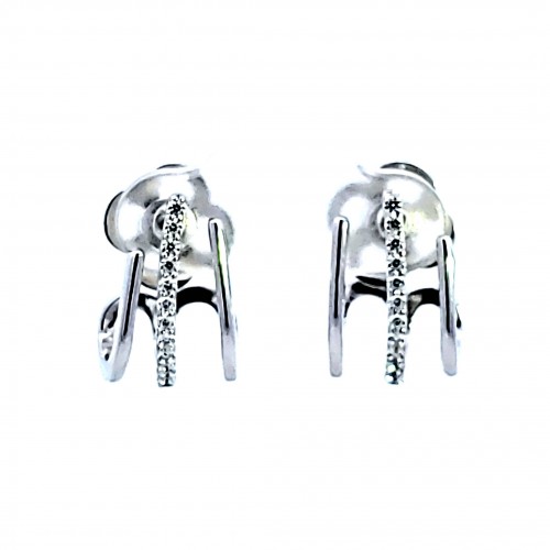 Sterling Silver and Platinum Oval CZ Drop Earrings