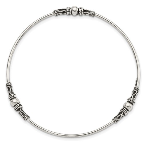 Sterling Silver Antiqued Beaded Slip On Bangle