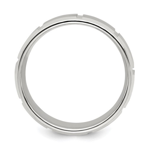 Sterling Silver Brushed Flat Notched Beveled Edge Fancy Band Size 10 10in 8mm