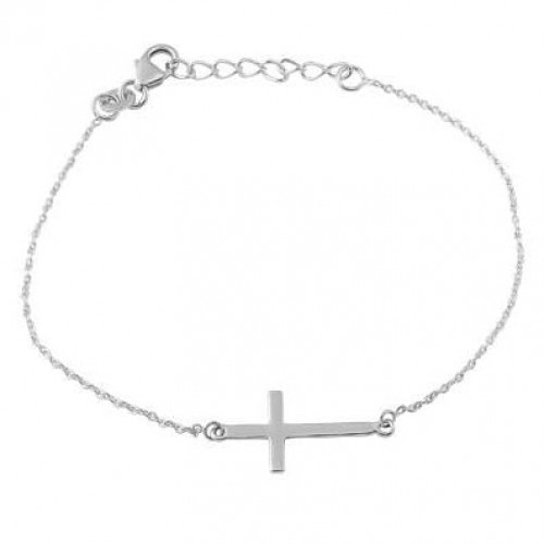 Solid 14K White Gold Baguette Straight Clear CZ Cross Pendant