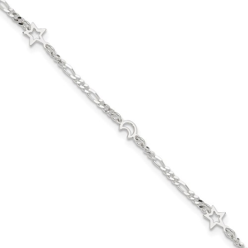 Sterling Silver Cable Chain/Flowers 5-Station Plus Extender – Total Anklet 9in