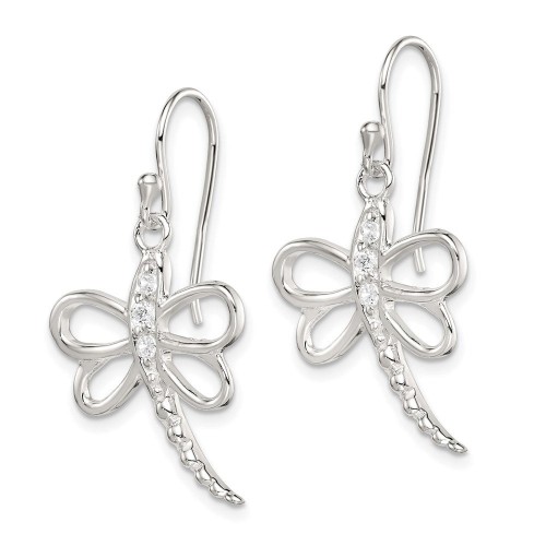 Sterling Silver CZ Dragonfly Shepherd Hook Earrings