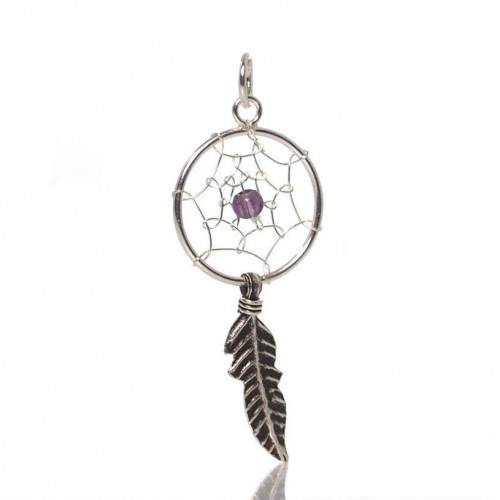 - Sterling Silver Dreamcatcher with Amethyst Pendant 20mm