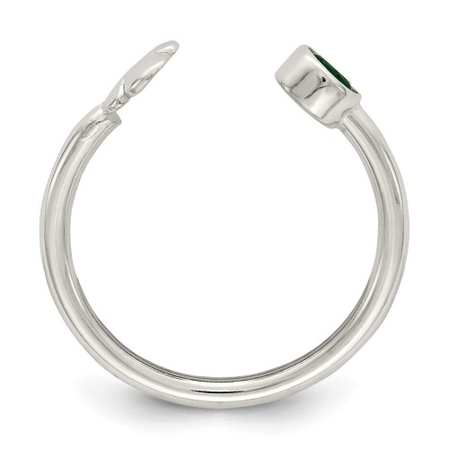 Sterling Silver Green Glass Bead 4-Leaf Clover Adjustable Ring