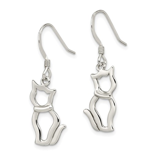 Sterling Silver Polished Cat Shepherd Hook Earrings