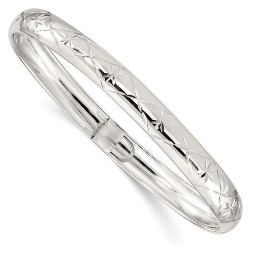 Sterling Silver Polished D/C Textured Flexible Bangle 10mm