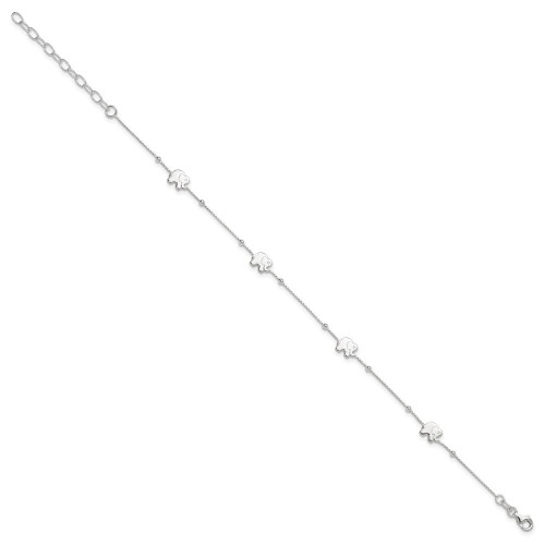 Sterling Silver Polished Elephant Plus Ext. Anklet 9in
